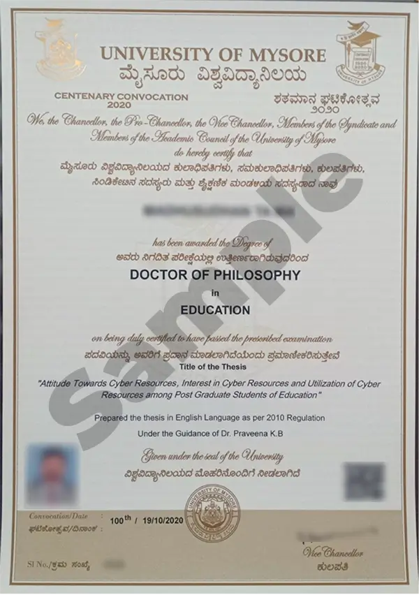 Programme offered by University of Mysore Online
